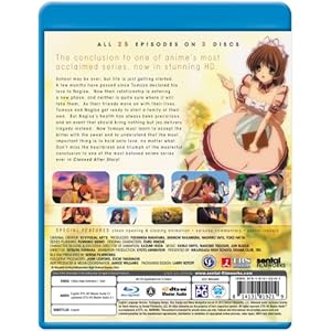 Clannad and Clannad After Story are 2 amazing seasons. One of the best Animes I have ever seen. It makes you laugh and it is so sad. I have the blu ray version of Clannad and the DVD version of Clannad After Story. It kind of irked me that it is going to take them a whole year to release the After Story. Kind of annoying since I dropped like $60 for the blu ray of Clannad and another $40 for the After Story. I am tempted to buy the blu ray but it is going to be bloody expensive.