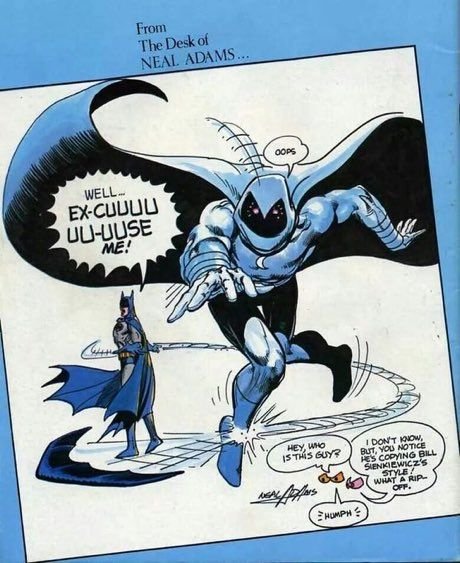 Wow, I don’t think I’d seen that before. When Sienkiewicz started, he was known as copying Adams. I’m glad he grew up. But what’s the back story with this picture? Was Neal pissed or just messing with him?