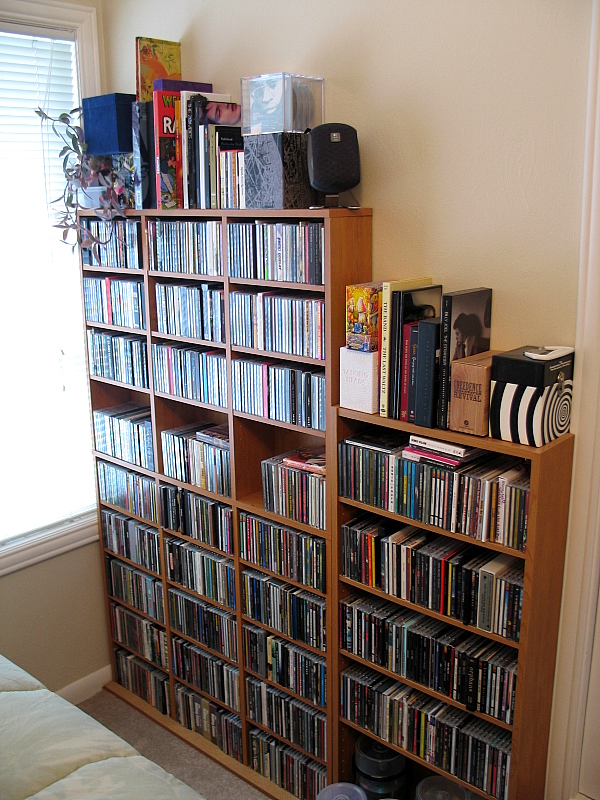 http://farm4.static.flickr.com/3044/...e138df8600.jpg Soundtracks, classical, New Age, and miscellaneous had to get moved to other shelves as I ran out of room. CDPedia says my total collection is 708 CDs, but I need to make sure all the soundtracks and classical albums are really in there. I've started using the Amazon Media Library as my online cataloging tool, it's mostly complete: Amazon CD Library |
